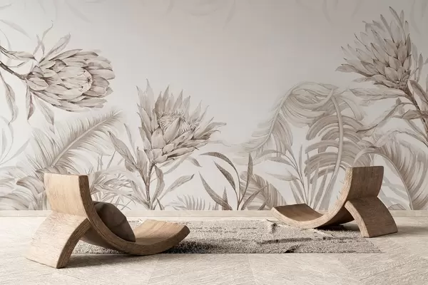 Тапете за зид Протеа међу тропским лишћем, беж нијансе бр. w03952