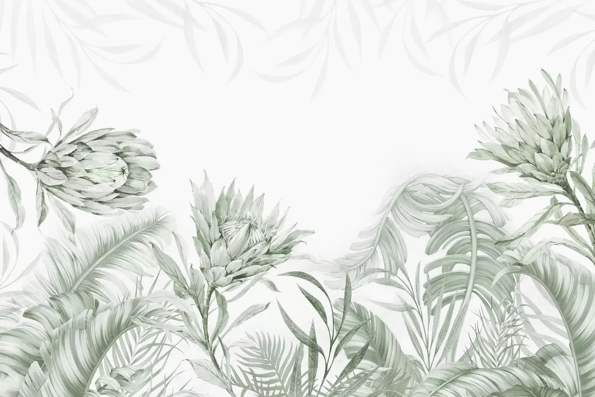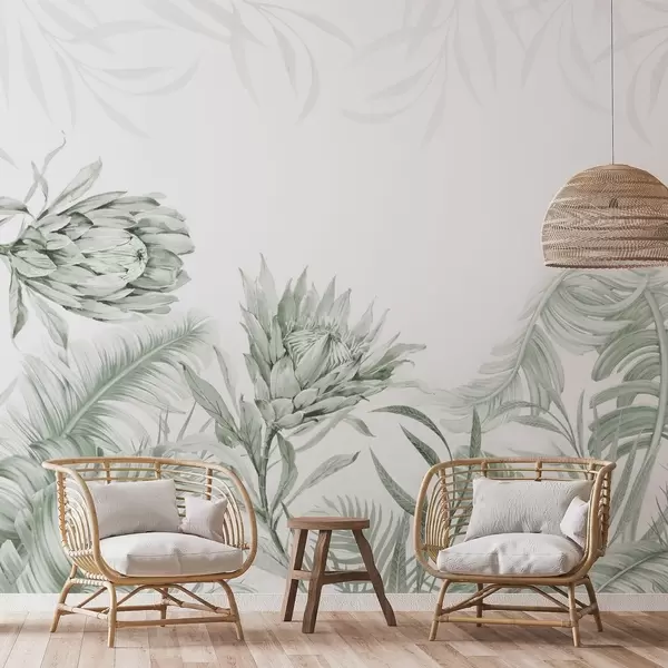 Тапете за зид Протеа међу тропским лишћем, плаве нијансе бр. w03952v3