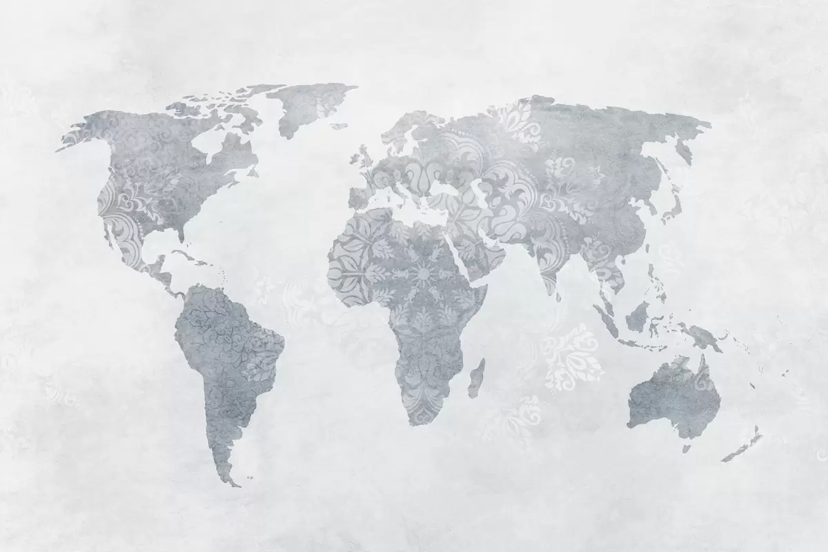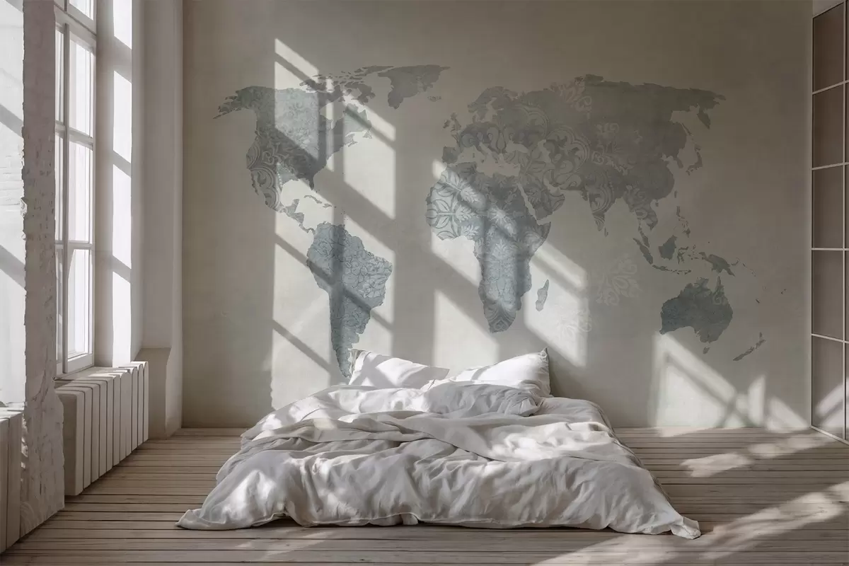 Тапете за зид Мапа света са шаром, плаве нијансе бр. w03954v2