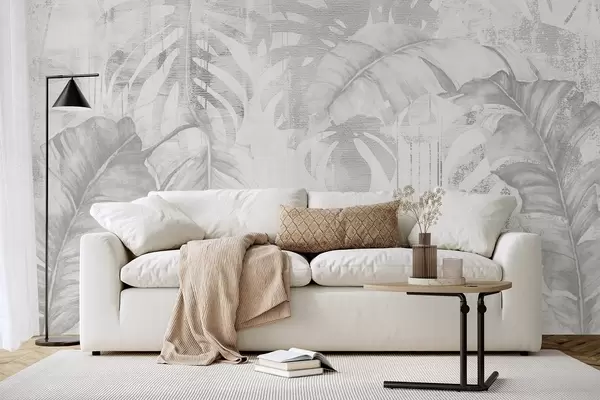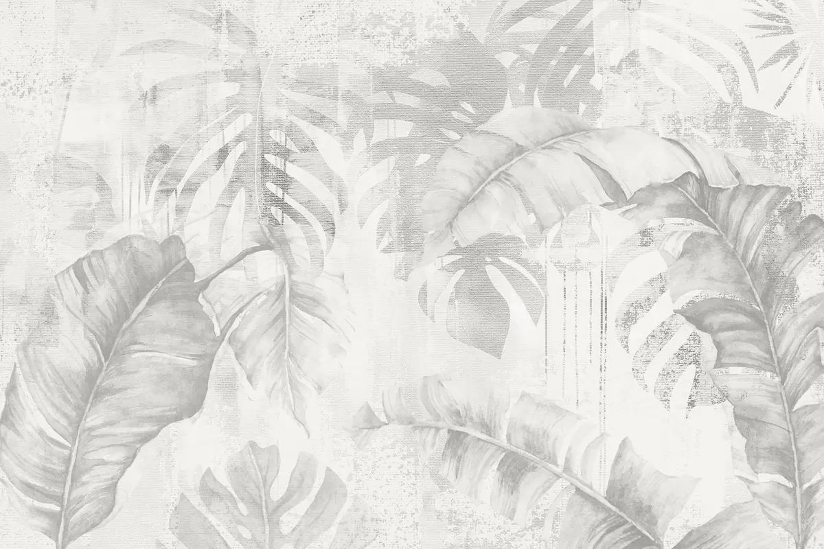 Тапете за зид Тропско лишће у гранџ стилу, монохроматске нијансе бр. w03956v1