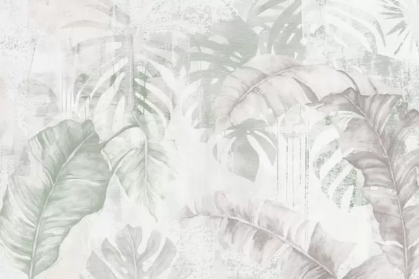 wall murals Тропско лишће у гранџ стилу, монохроматске нијансе w03956v1