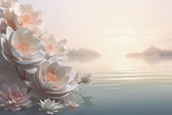 Тапете за зид Пастелни лотоси на води под вечерњим небом бр. w03988