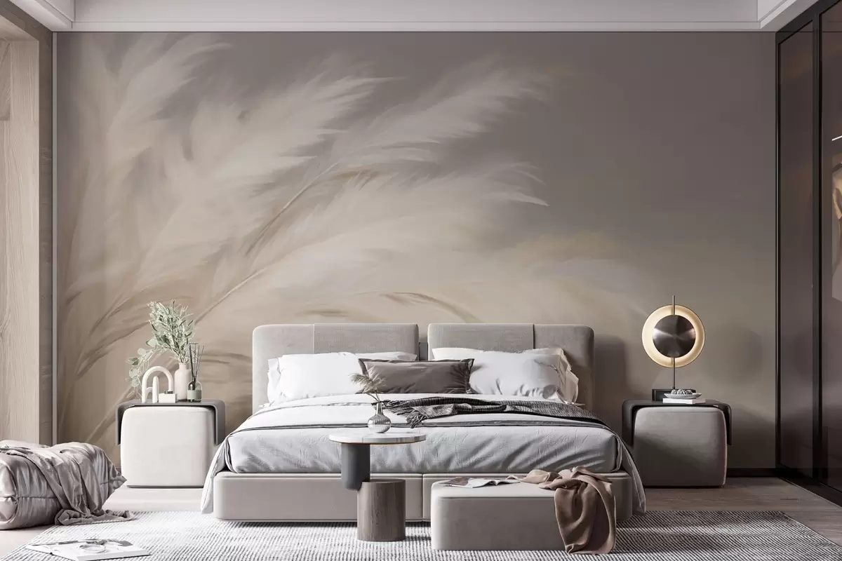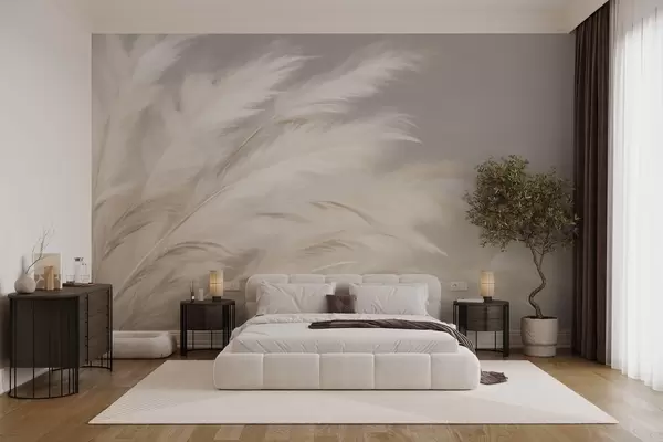 Тапете за зид Меке, пахуљасте траве у беж и сивој боји бр. w03992