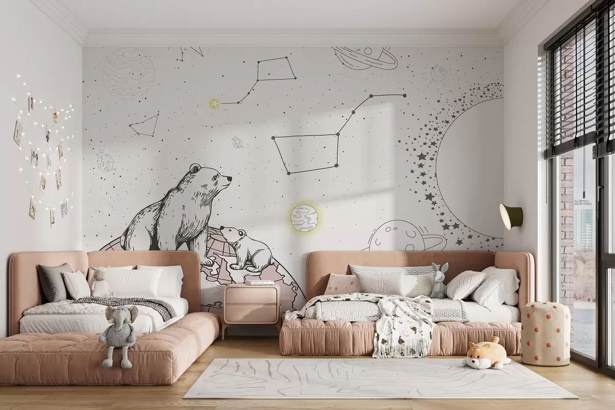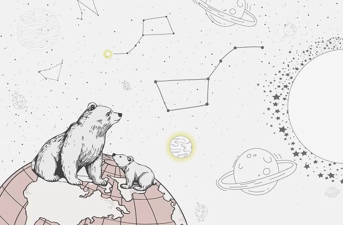 Тапете за зид Медведи и звезде на смеђој позадини, тема астрономије бр. w04002v2