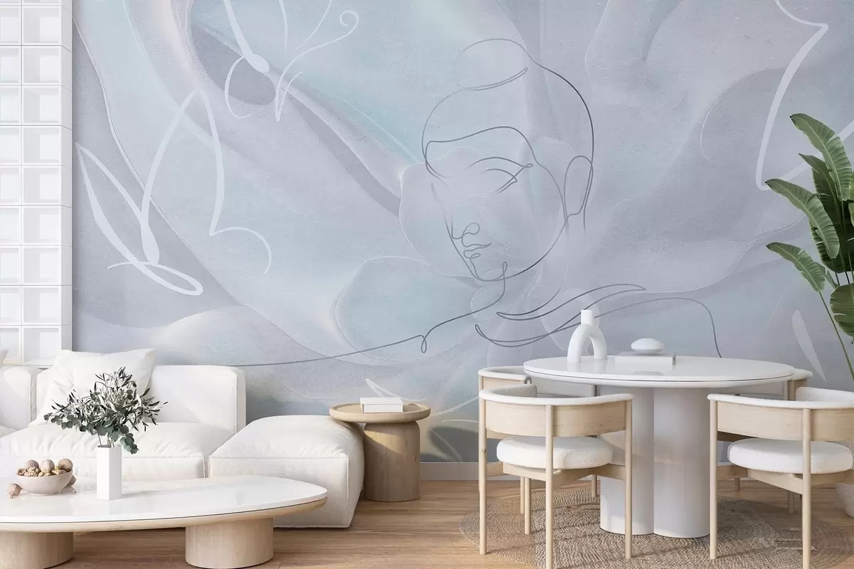 Тапете за зид Цветна апстракција са цртежом Буде, плаве боје бр. w04004v1