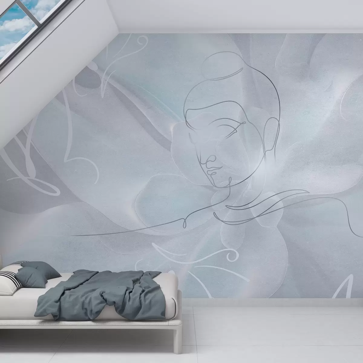 Тапете за зид Цветна апстракција са цртежом Буде, плаве боје бр. w04004v1