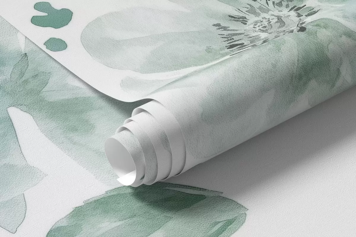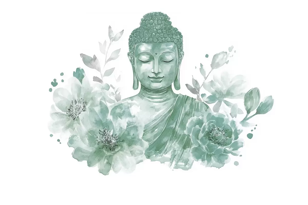 Тапете за зид Акварел Буда са цвећем, духовна, зелена палета боја бр. w04005v3