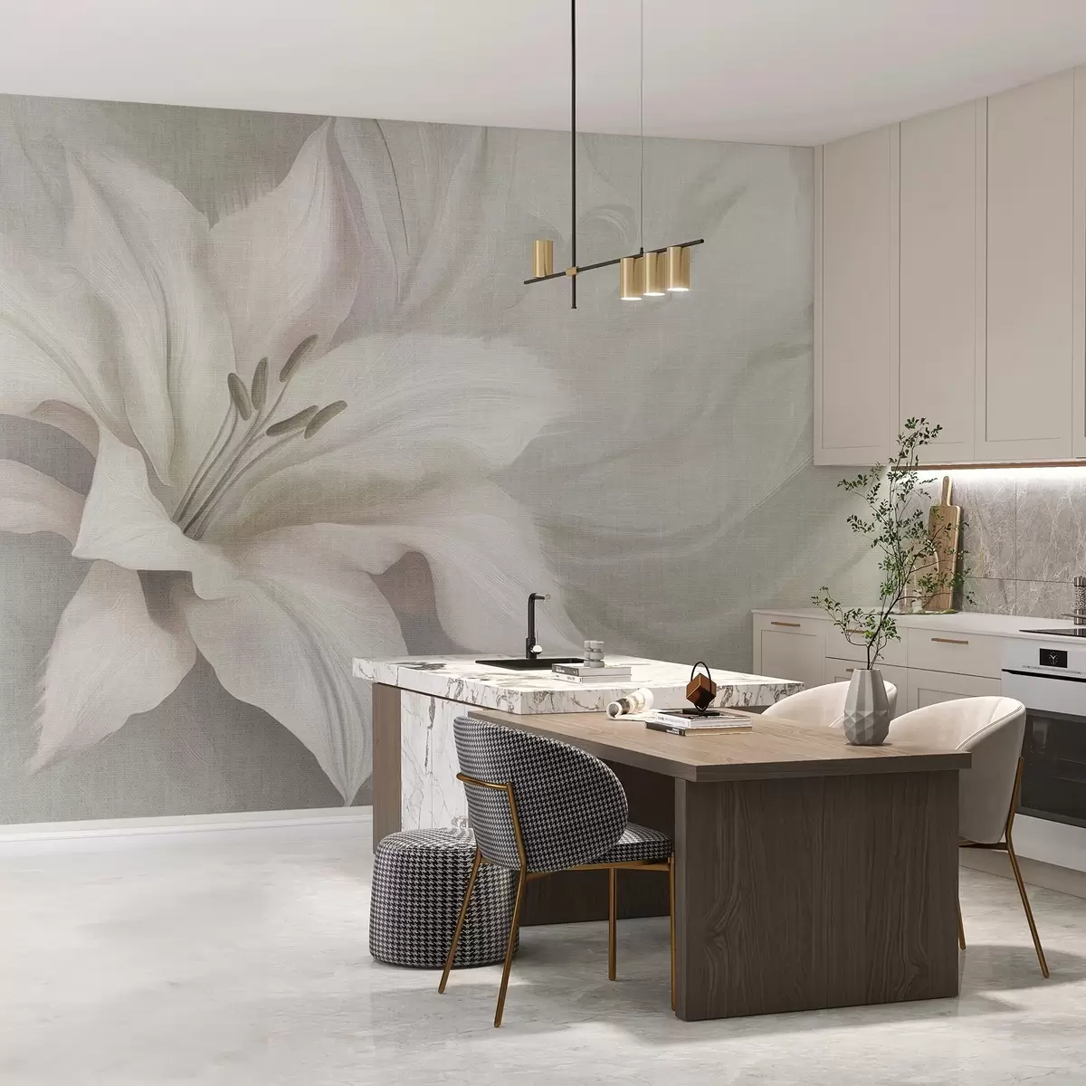 Тапете за зид Флуидна апстракција цвета љиљана, цветне, сиве боје бр. w04006v2
