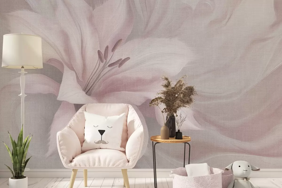Тапете за зид Флуидна апстракција цвета љиљана, цветне, ружичасте и беж боје бр. w04006v4