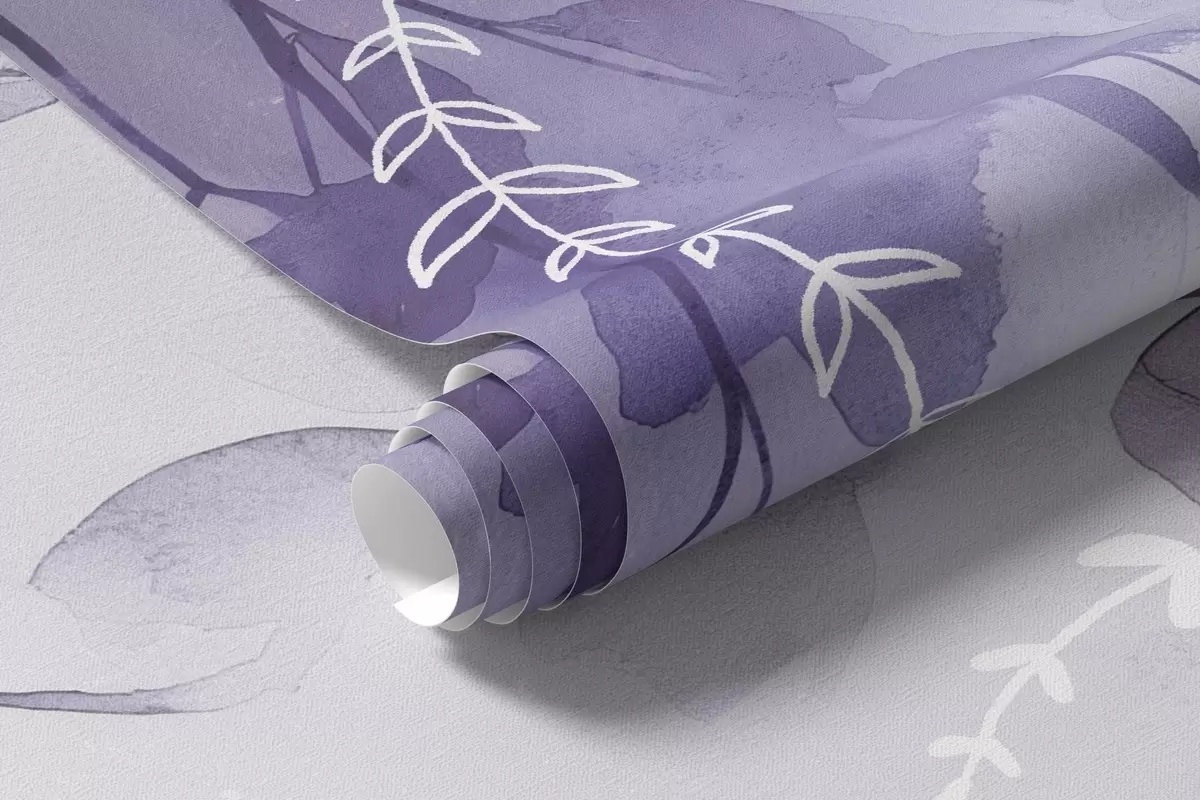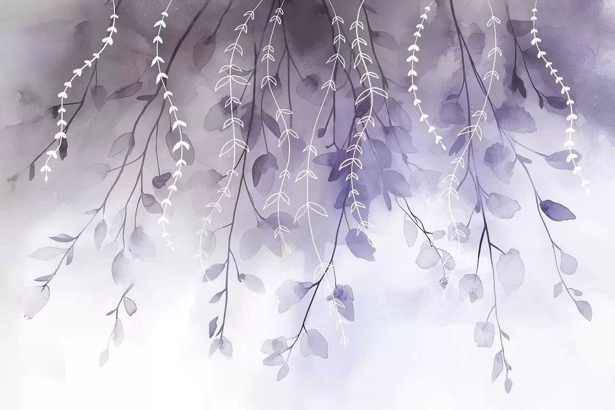 Тапете за зид Гране са листовима у акварел стилу, природне љубичасте боје бр. w04007v2