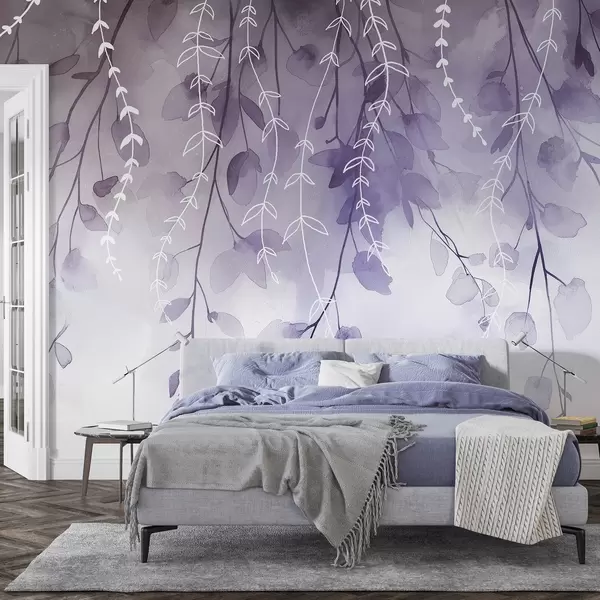 Тапете за зид Гране са листовима у акварел стилу, природне љубичасте боје бр. w04007v2