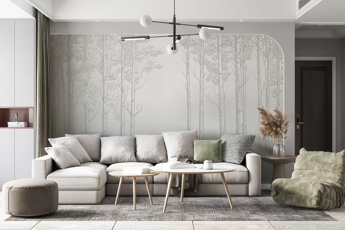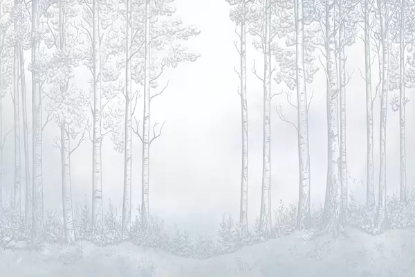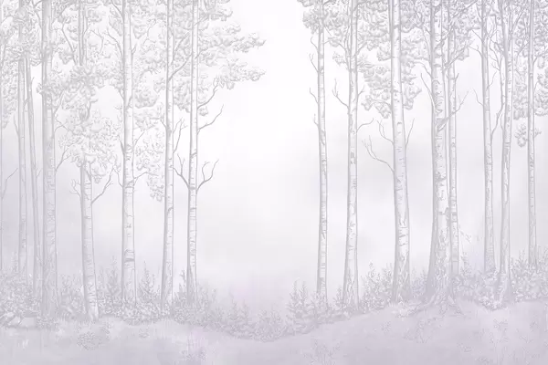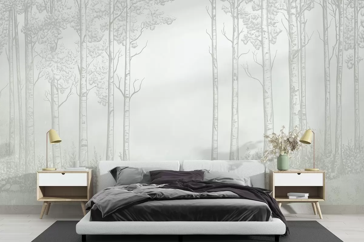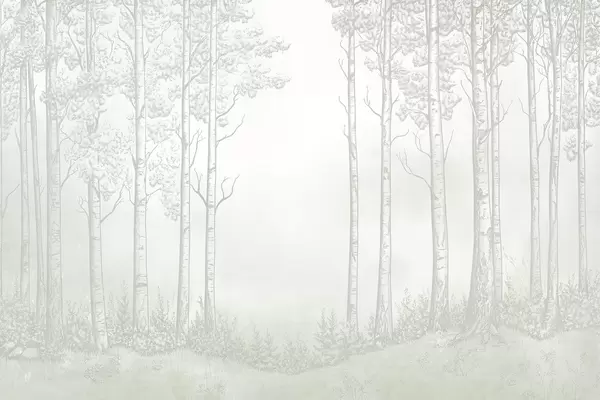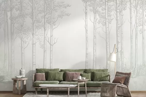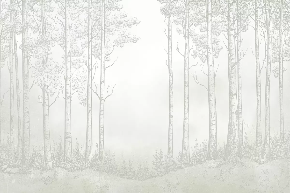 Тапете за зид Шума са брезама, минимализам, природа, зелена палета боја бр. w04009v1