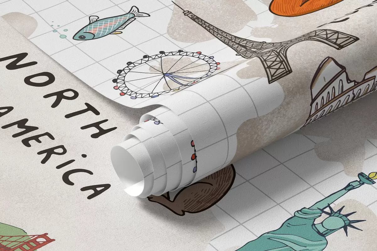 Тапете за зид Мапа света са животињама и знаменитостима бр. w04011