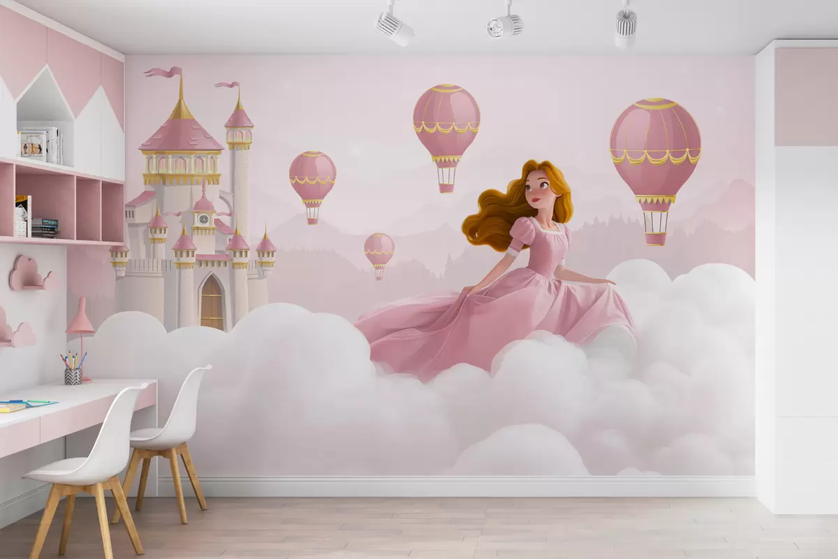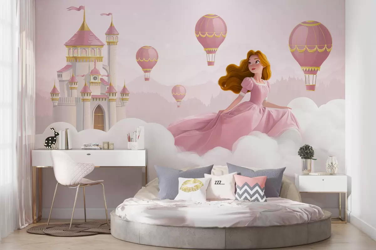 Тапете за зид Принцеза међу облацима на позадини пејзажа са замком бр. w04015v1