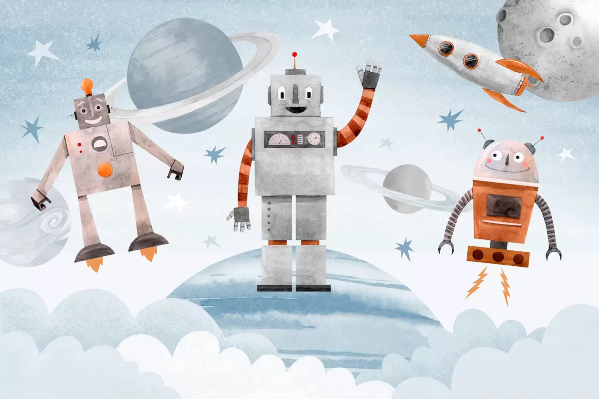Тапете за зид Роботи у свемиру у стилу акварела бр. w04016