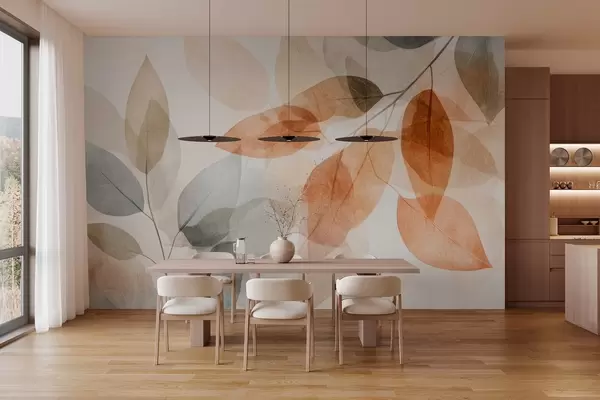 Тапете за зид листови у акварелном стилу у нијансама сепије и сиве бр. w04024
