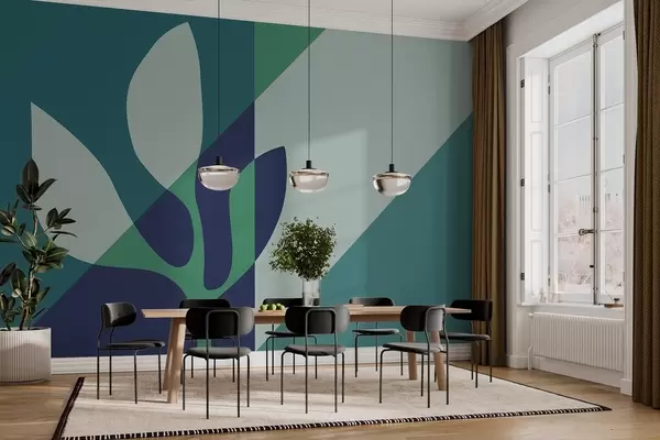 Тапете за зид апстрактна графичка биљка на позадини геометрије у плавим тоновима бр. w04028v1