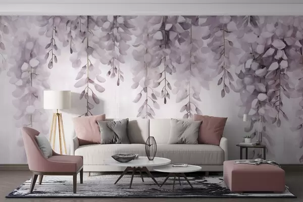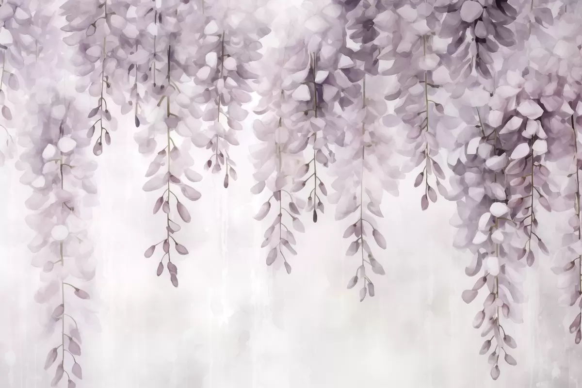Тапете за зид Акварелна сцена са нежном јоргованом глицинијом која се слива одозго, евоцирајући мир и јасноћу јутарње измаглице бр. w04034v3