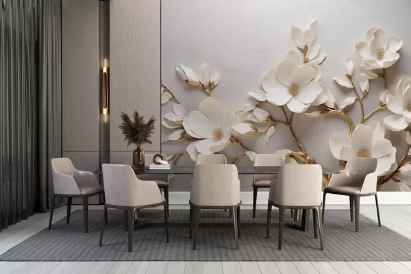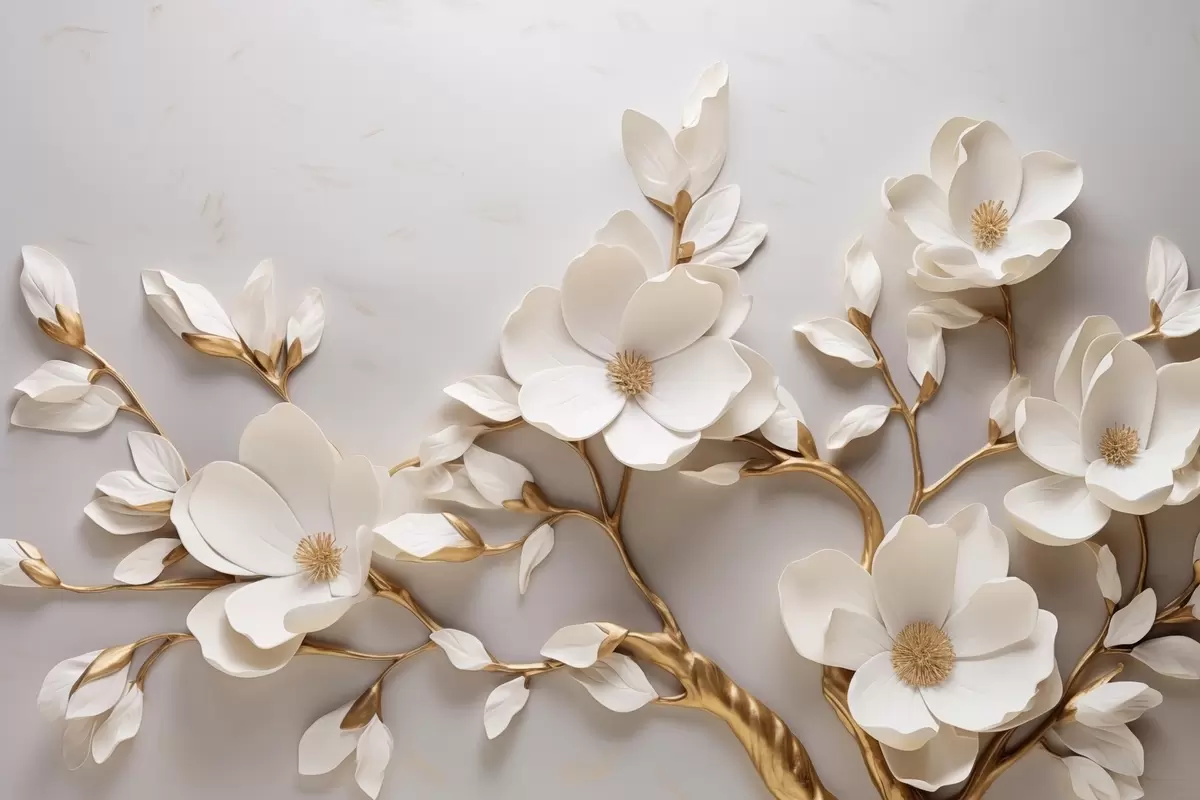Тапете за зид Елегантно рељефно цвеће са меким стабљикама ствара мирну, хармоничну сцену бр. w04039