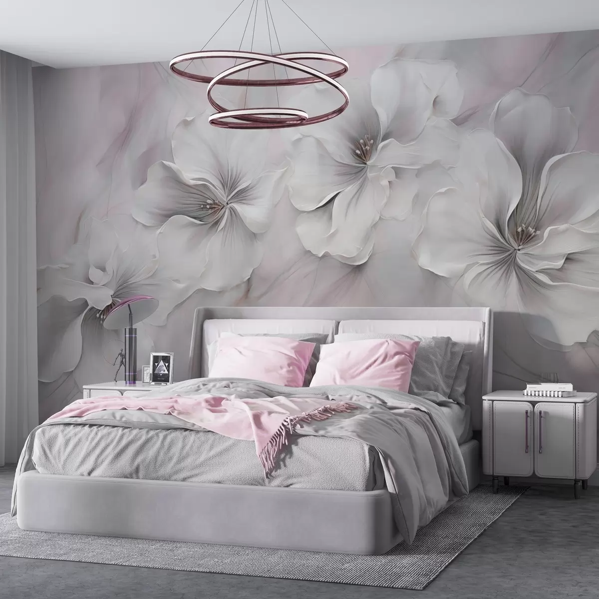 Тапете за зид Уљано сликарство цвећа на ружичастој позадини бр. w04047v1