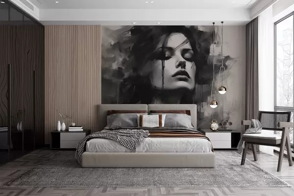 Тапете за зид Портрет жене у сивој и црној одећи бр. w04049