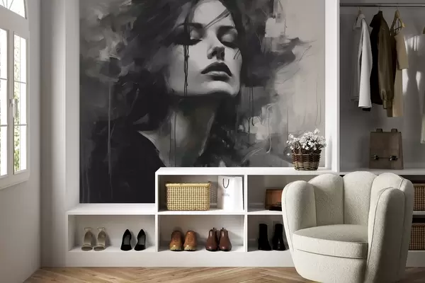 Тапете за зид Портрет жене у сивој и црној одећи бр. w04049