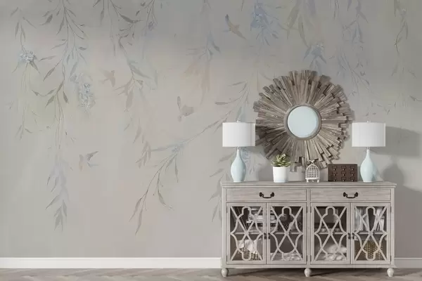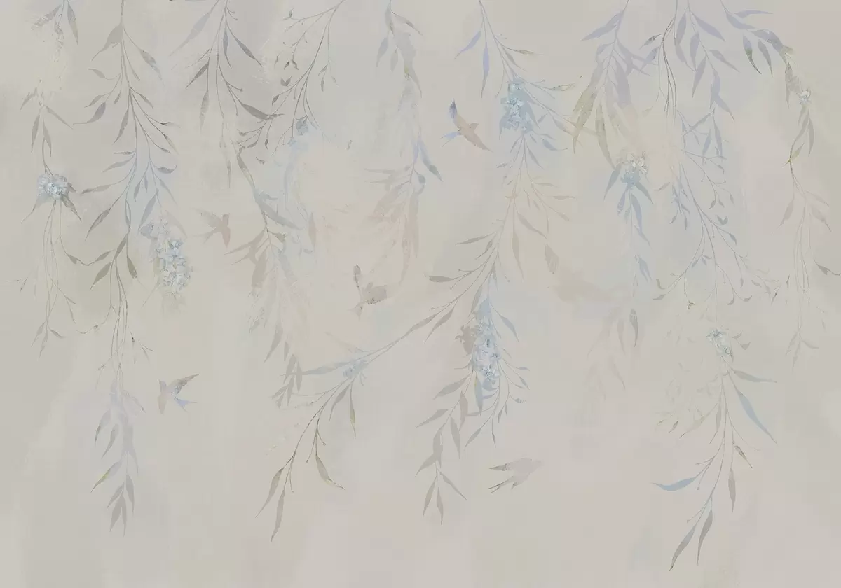 Тапете за зид Гране са висећим лишћем и птицама бр. w04053