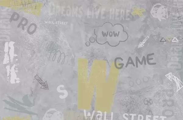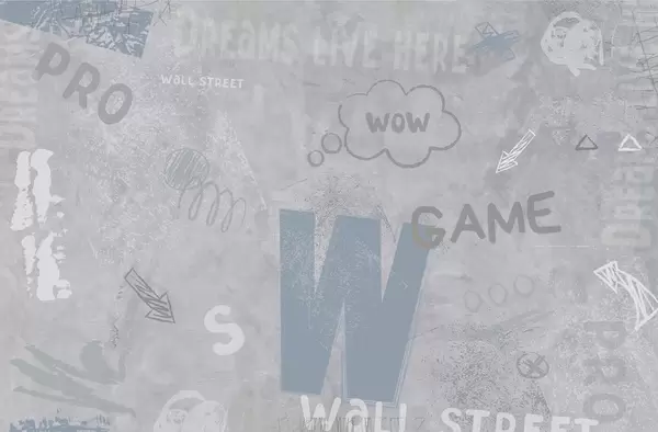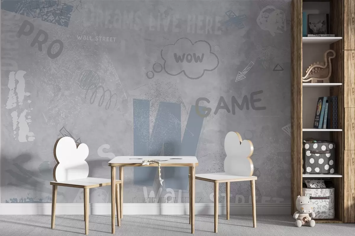 Тапете за зид Дизајн у стилу уличне уметности са плавим натписима на позадини бетонског зида бр. w04056v1