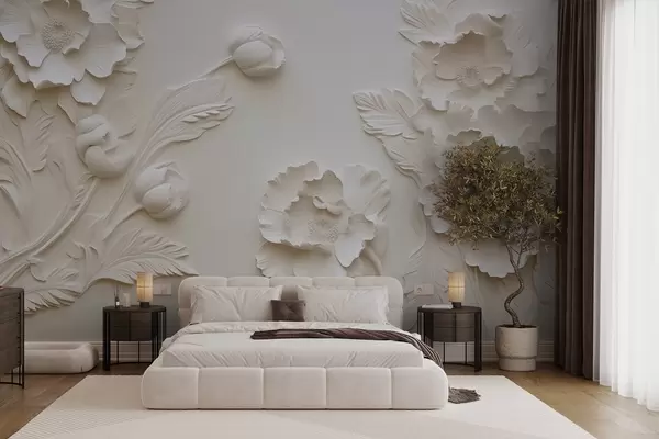 Тапете за зид Цвеће у стилу барељефа у пастелним бојама бр. w04060