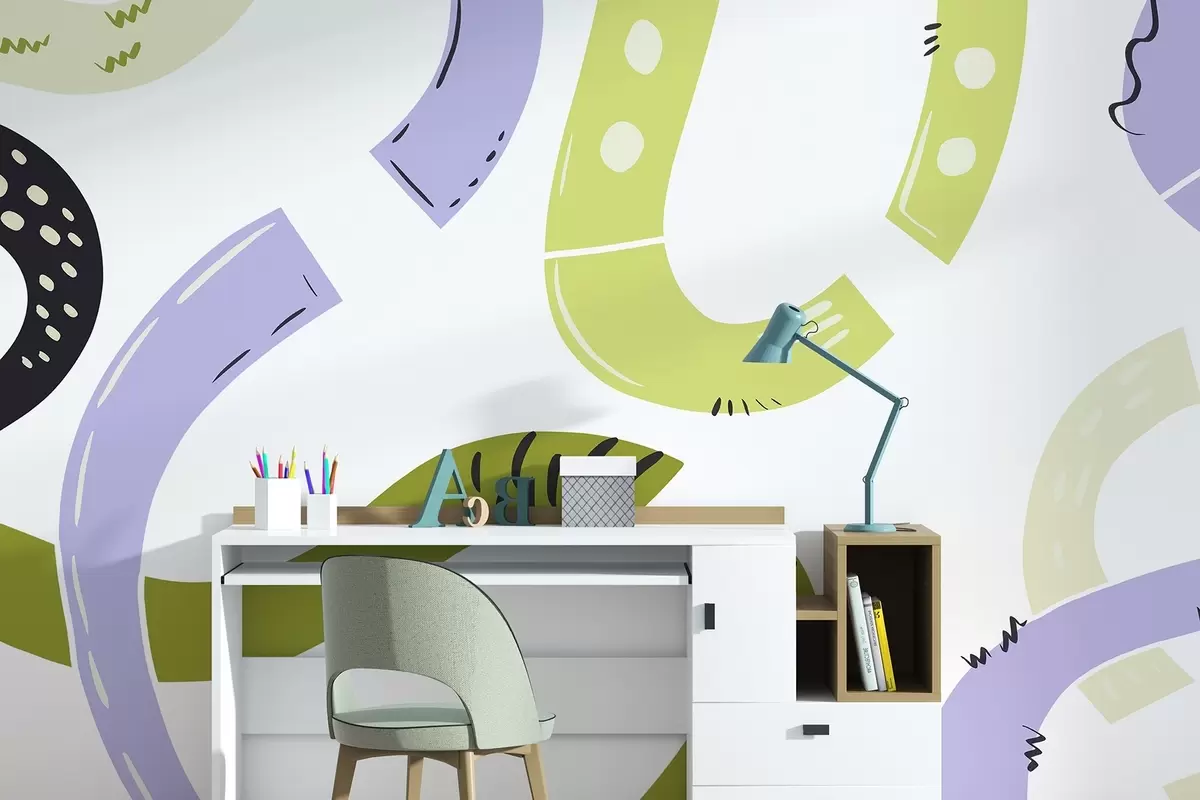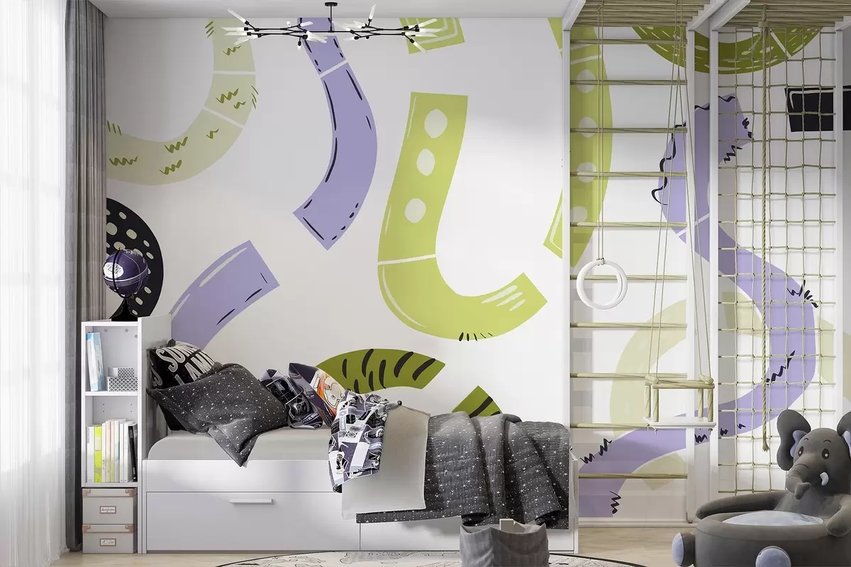 Тапете за зид Апстрактни цртежи, малолетнички, цртежи, зелени, љубичасти бр. w04066v1