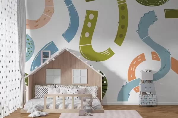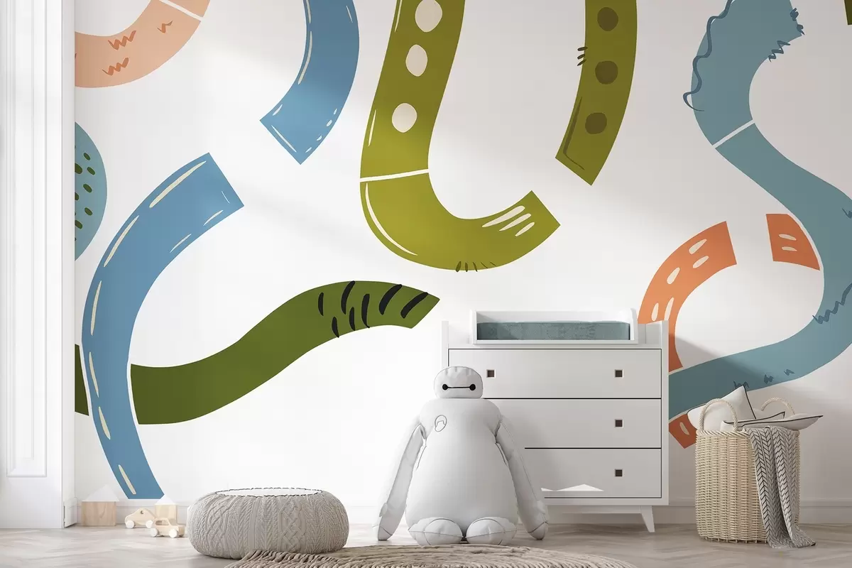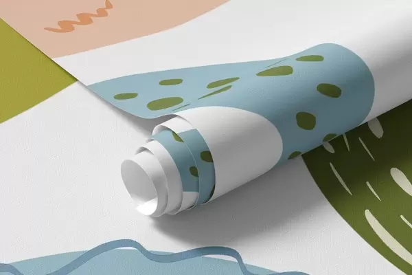 Тапете за зид Апстрактни цртежи, малолетнички, цртежи, зелени, плави, ружичасти бр. w04066v2