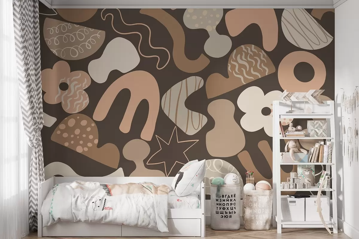 Тапете за зид Геометријске фигуре са цртежима, детињске, тамно беж позадина бр. w04068v1