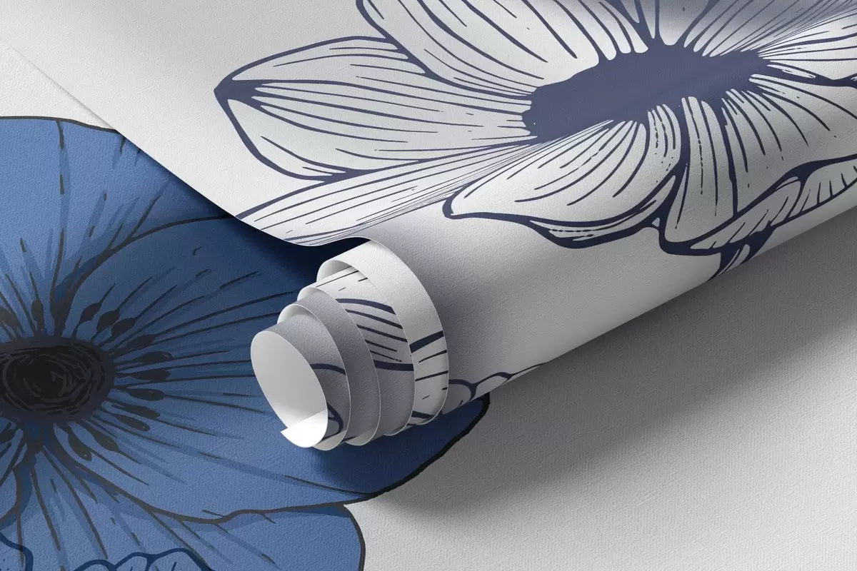 Тапете за зид Силуете балерина, рустично цвеће, линијске цртеже, плаве боје бр. w04069v3