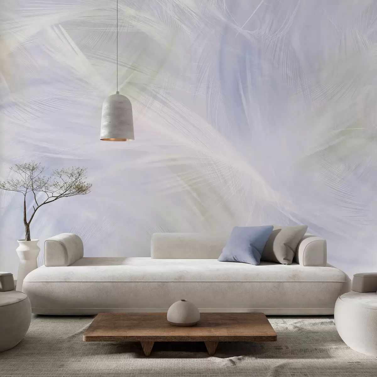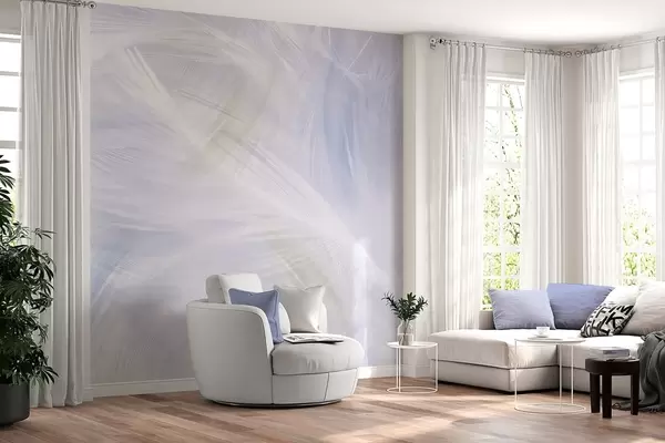 Тапете за зид прозрачно перје у нијансама беж и плаве бр. w04071v1