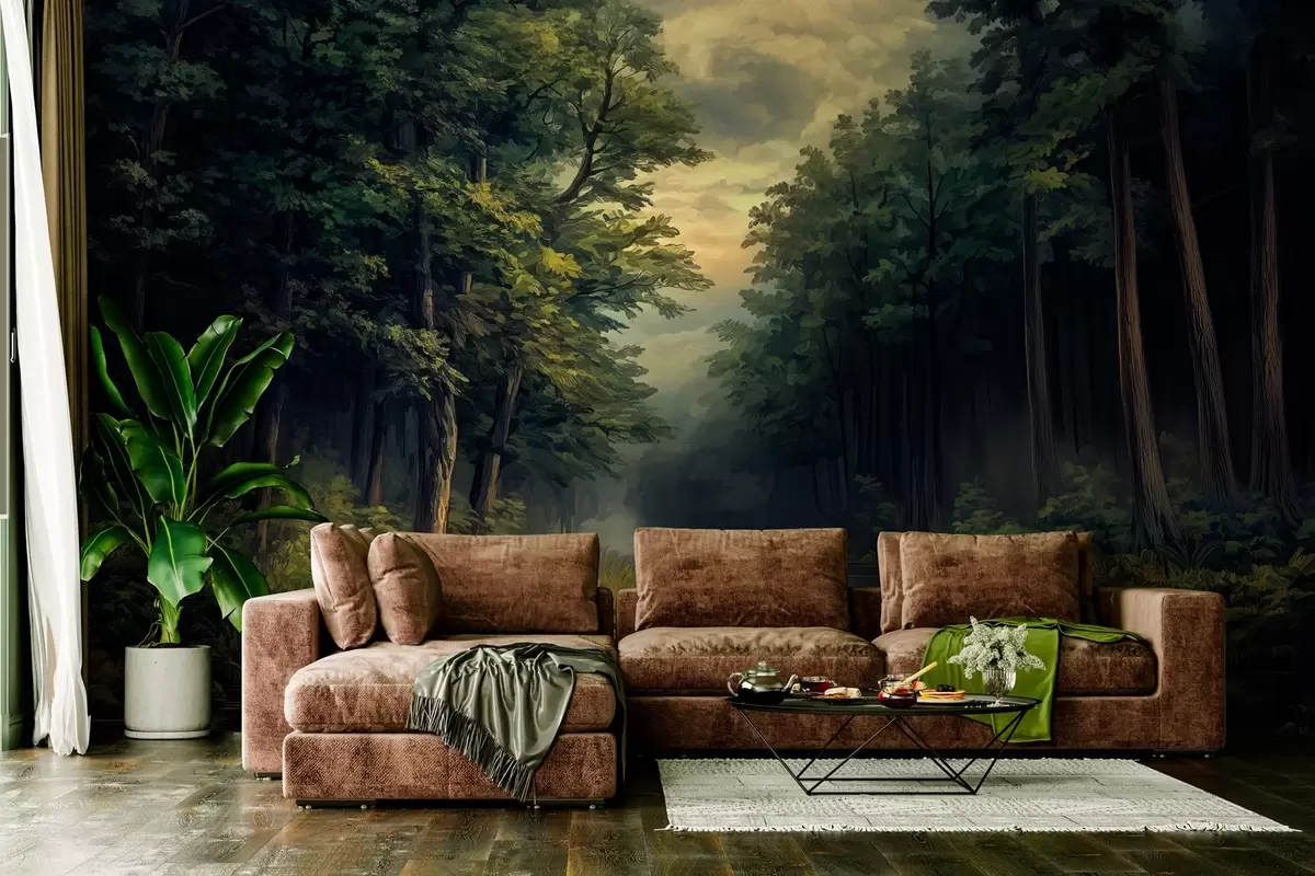Тапете за зид Шума са јеленима и реком у стилу холандског уљаног сликарства бр. w04072
