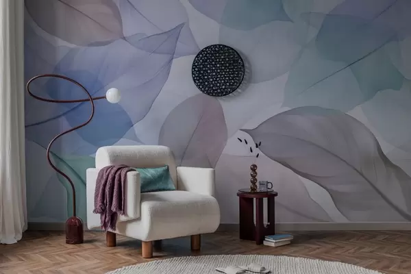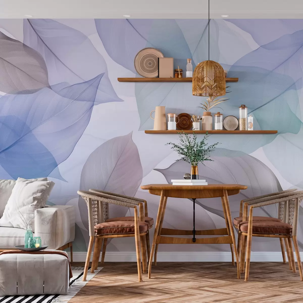 Тапете за зид Провидни листови са жилама у плавим и смеђим тоновима бр. w04075