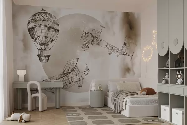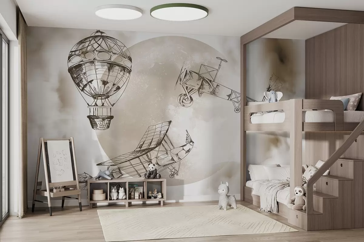 Тапете за зид Ретро авиони на позадини месеца и облака бр. w04085v1