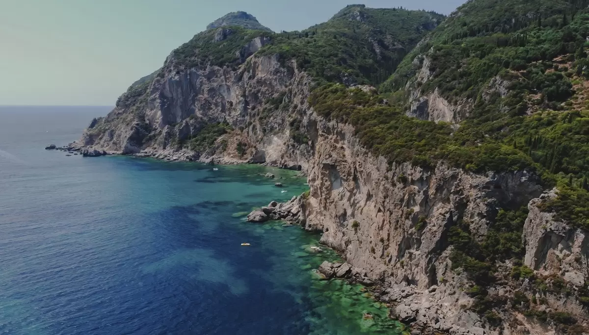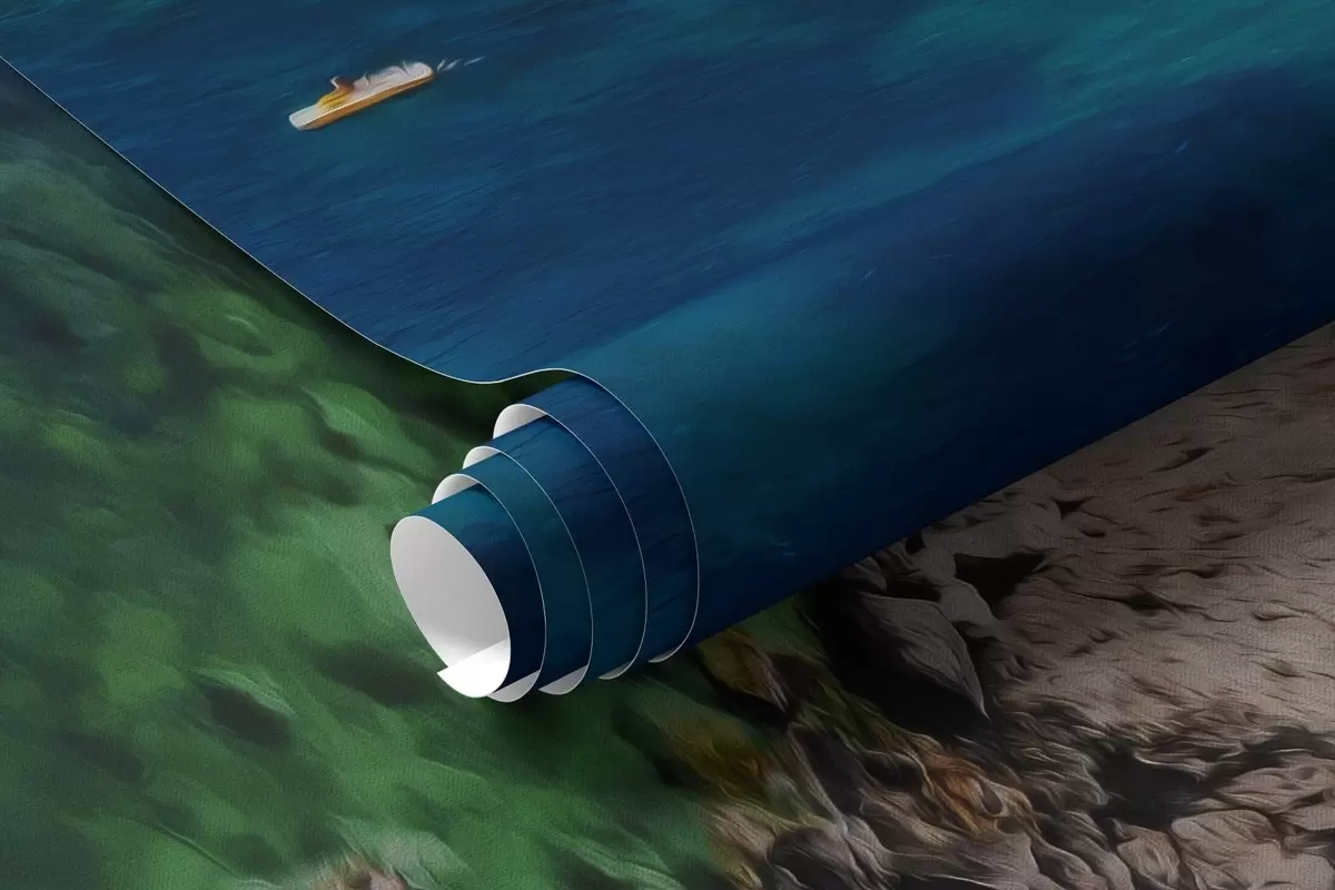 Тапете за зид Стеновите планине близу мора, цртеж уљаним стилом, аквамарин вода бр. w04096