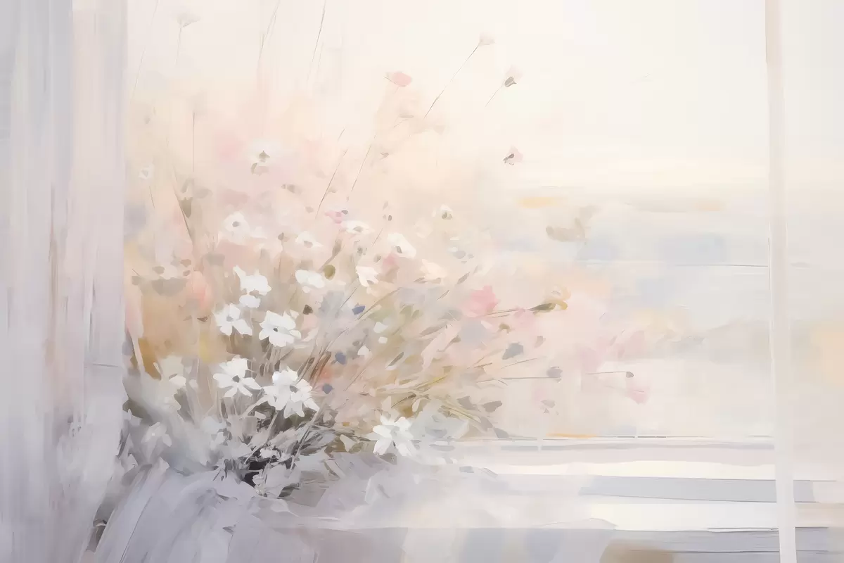 Тапете за зид Букет цвећа поред прозора, имитација слике бр. w04101