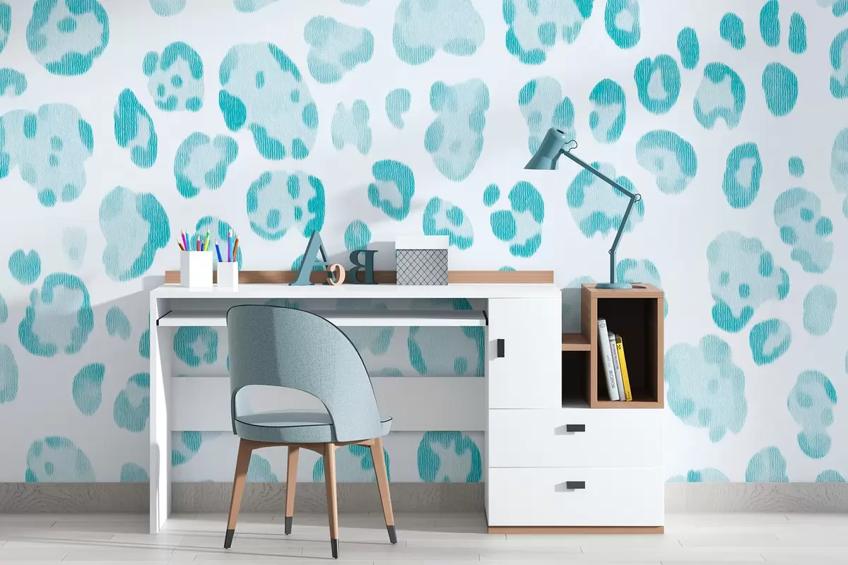 Тапете за зид Леопард принт, текстура вуне, плава боја бр. w04112