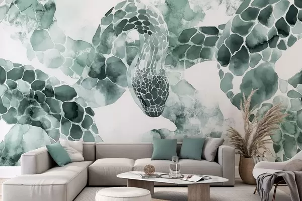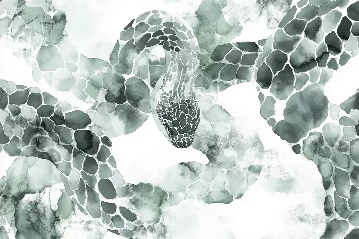 Тапете за зид Силуета змије, акварел стил, зелене боје бр. w04113v2