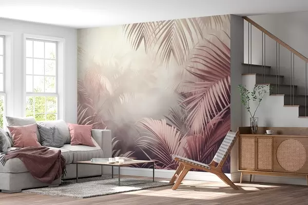 Тапете за зид тропска џунгла са ружичастом нијансом бр. w04142
