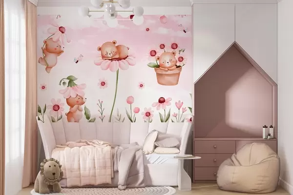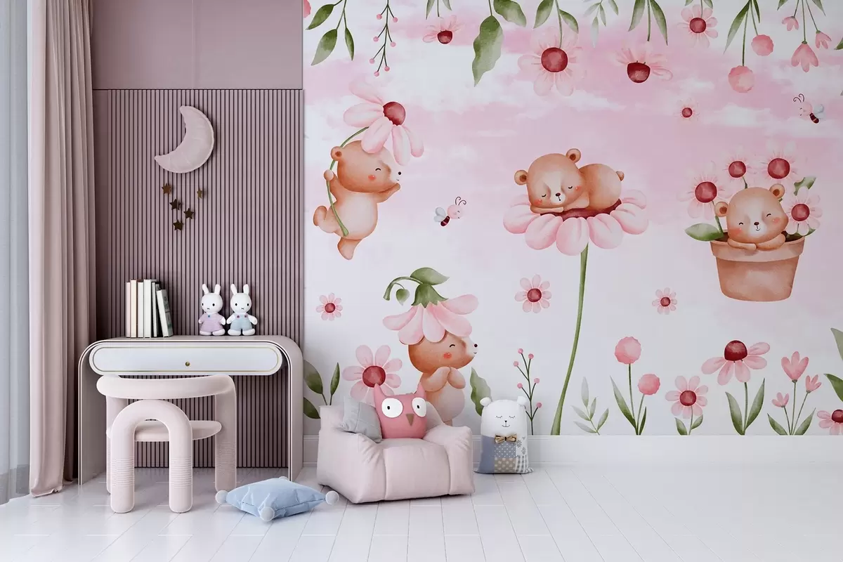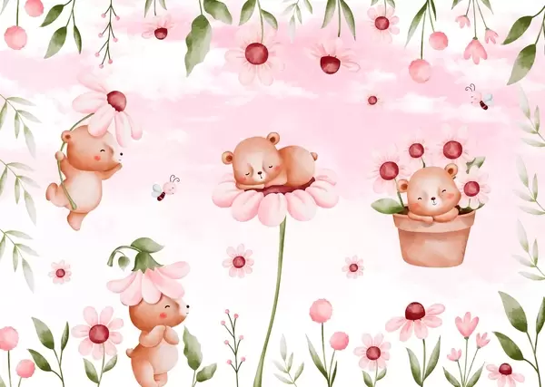 Тапете за зид Медведићи са цвећем, бајковите животиње бр. w04143