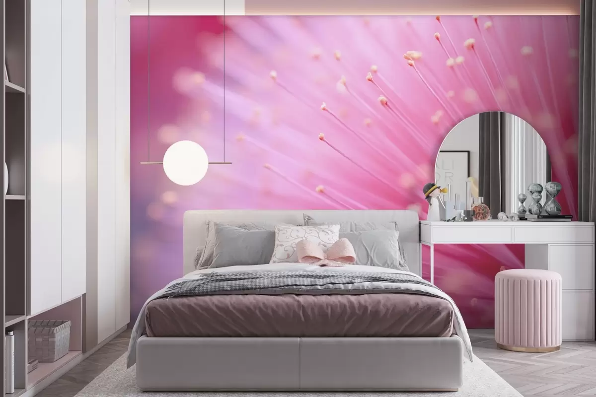 Тапете за зид Ружичасти цветни прашници у макроу, деликатна апстракција бр. w04154