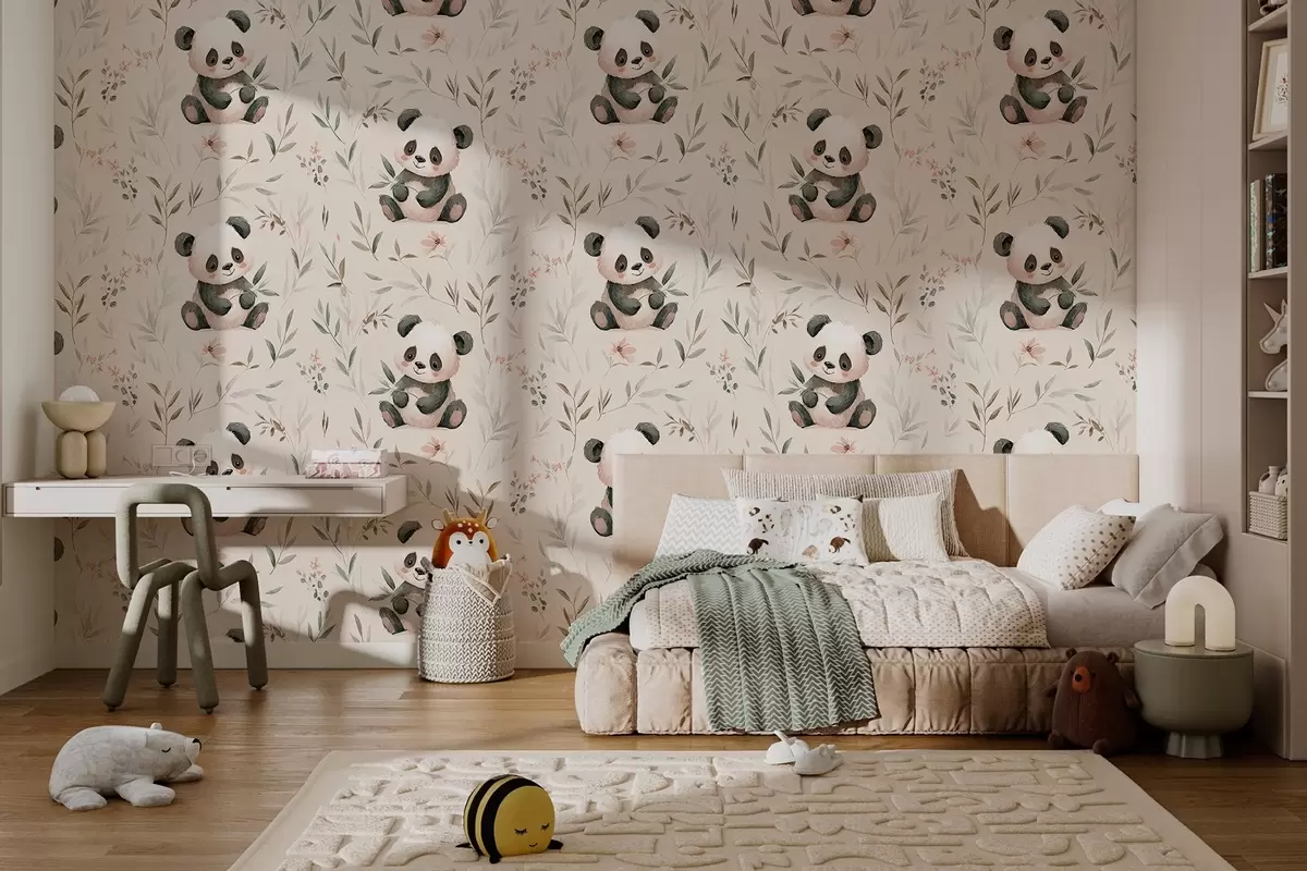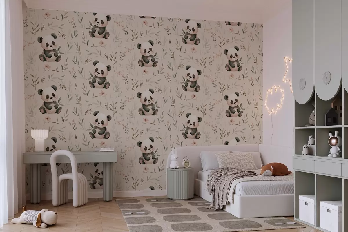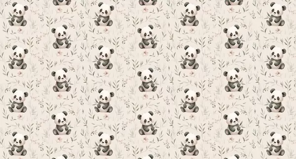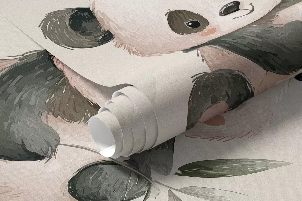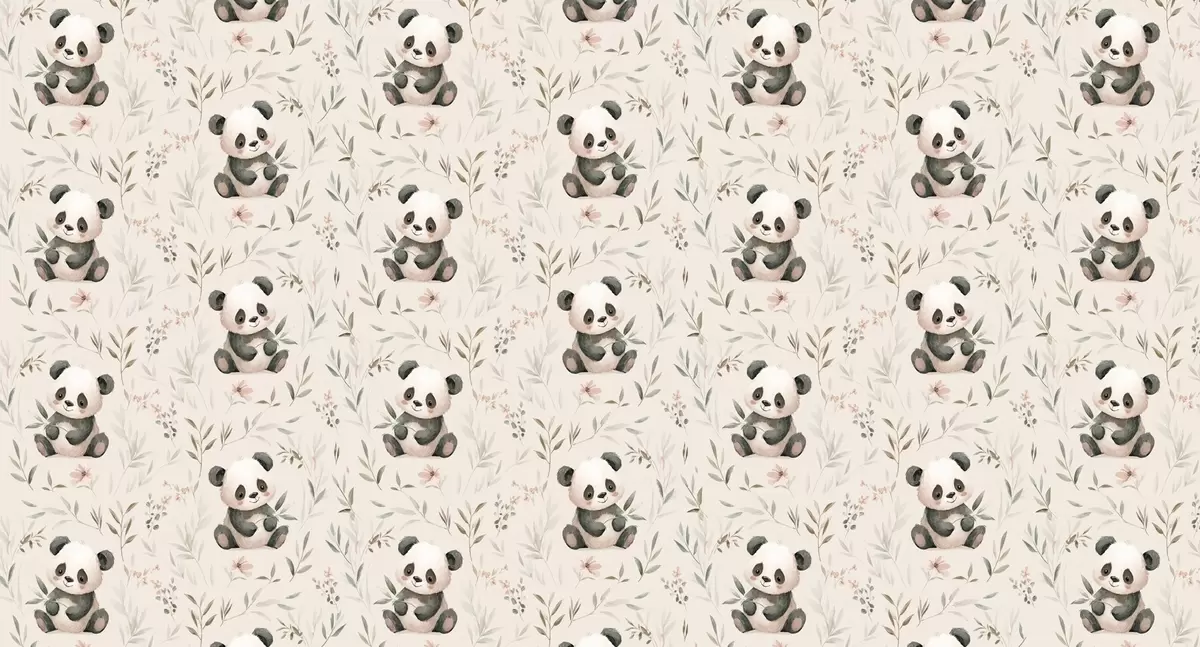 Тапете за зид слатке панде у стилу беба међу биљкама бр. w04170