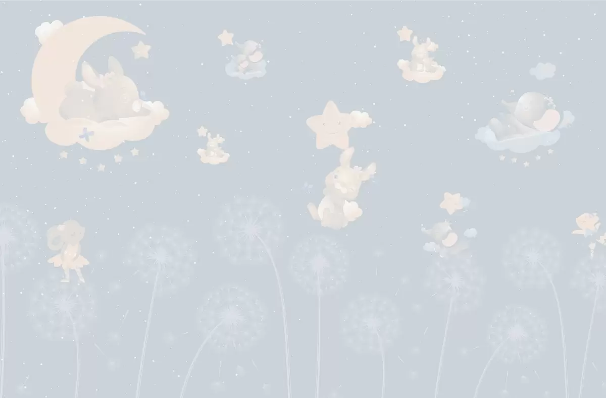 Тапете за зид Ноћна бајка са зецем, звездама и ружичастим маслачком бр. w04195v1