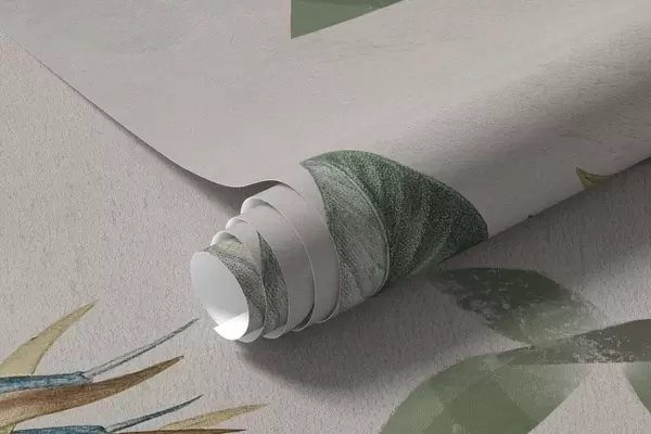 Тапете за зид Тропска композиција са биљкама и дрвећем на сивкастој позадини бр. w04201v1