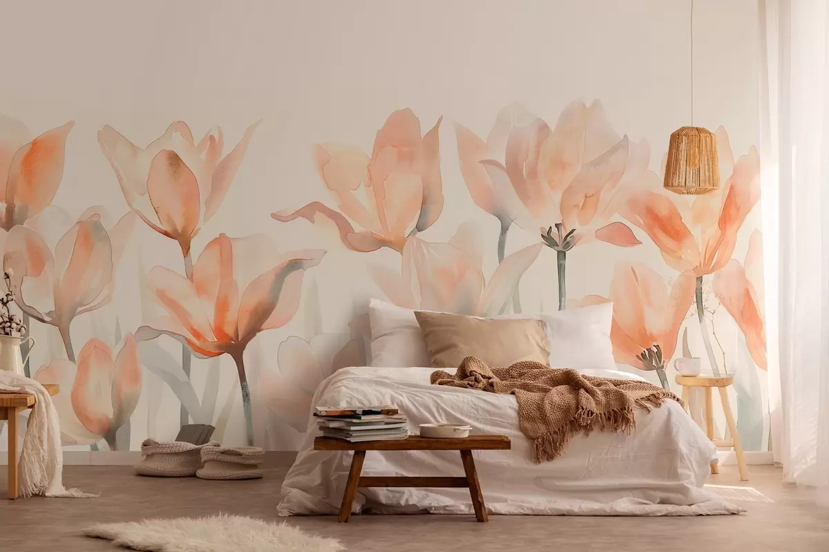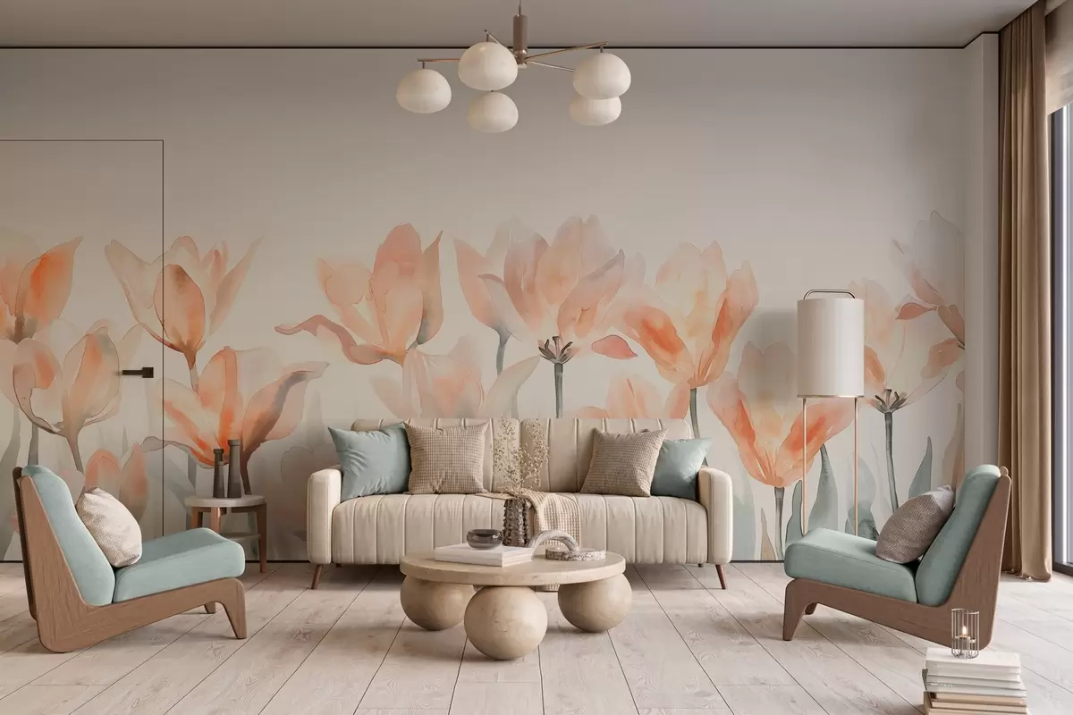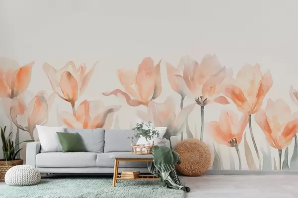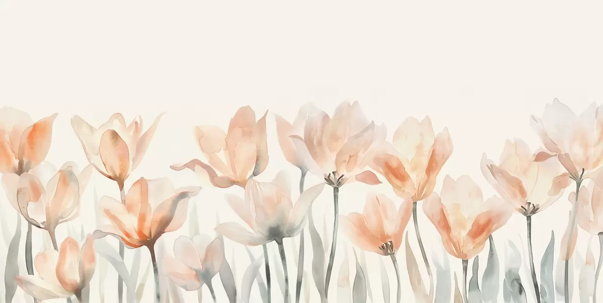 Тапете за зид Свежи акварелни тулипани расту одоздо бр. w04204