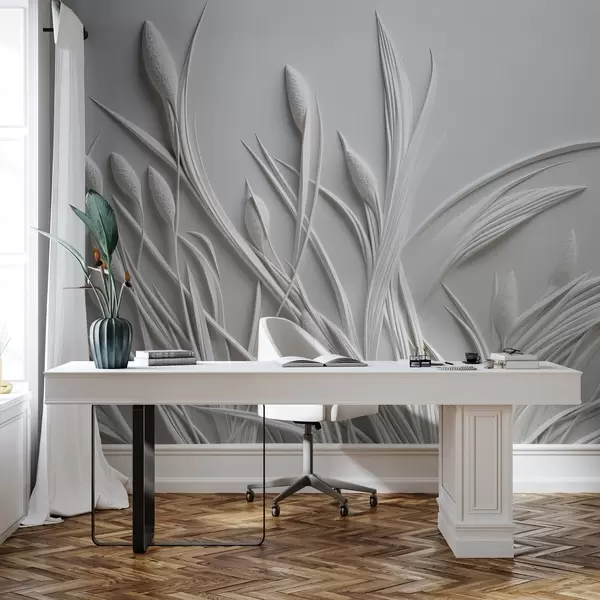Тапете за зид Барељеф са нежним лишћем и пампасом бр. w04247