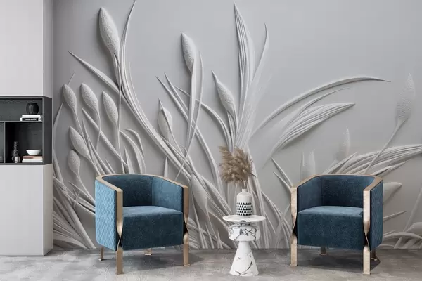 Тапете за зид Барељеф са нежним лишћем и пампасом бр. w04247
